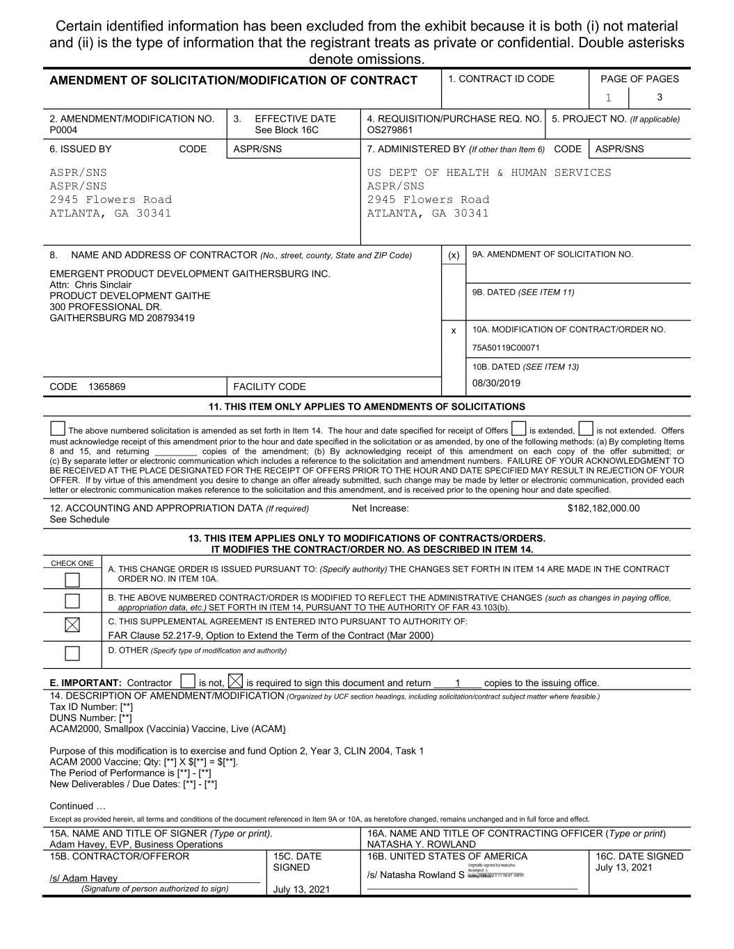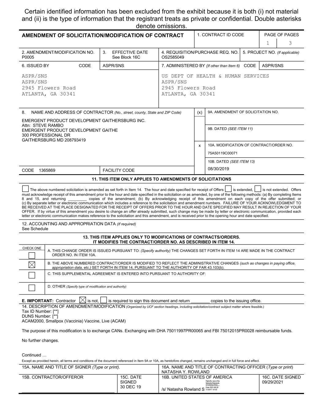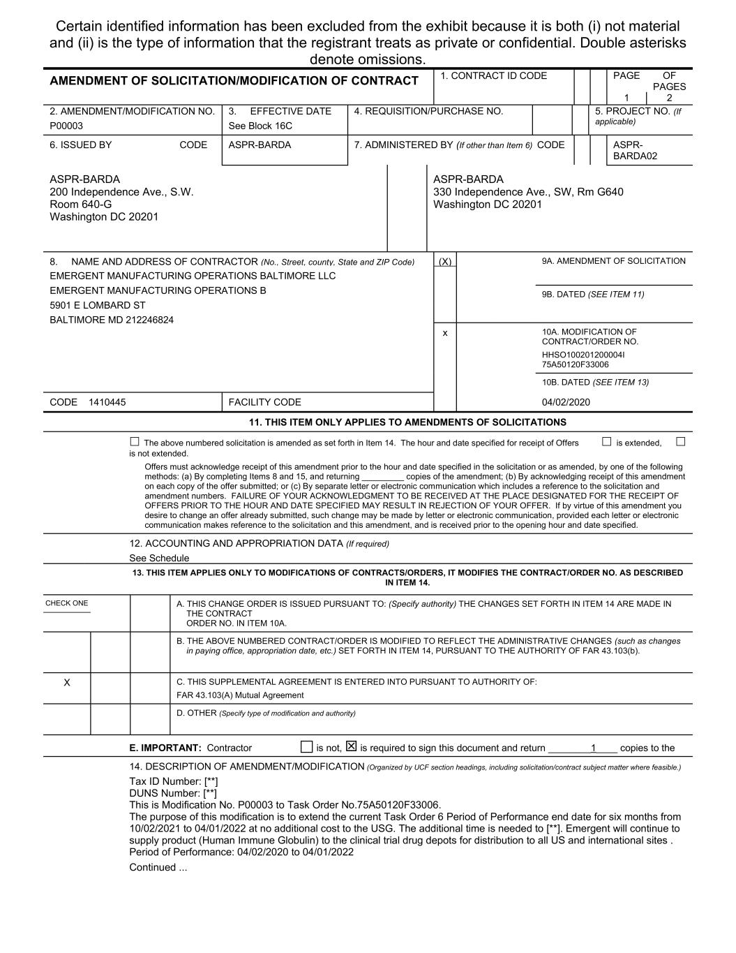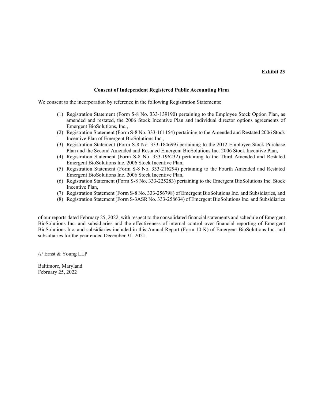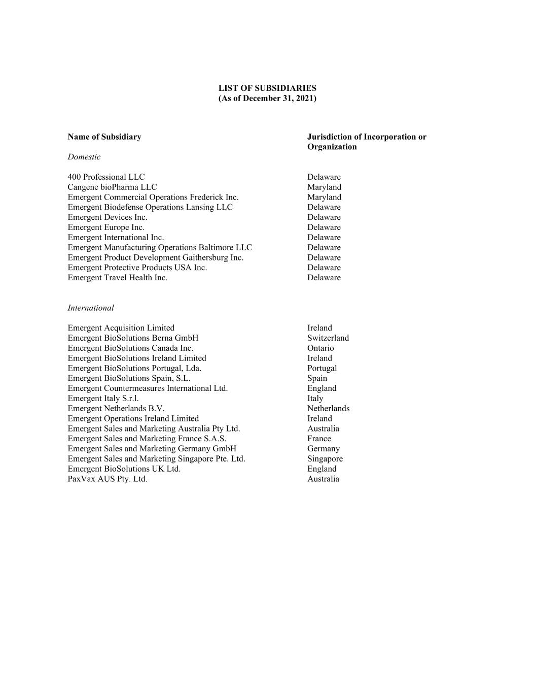 References in this report to “Emergent,” the “Company,” “we,” “us,” and “our” refer to Emergent BioSolutions Inc. and its consolidated subsidiaries.