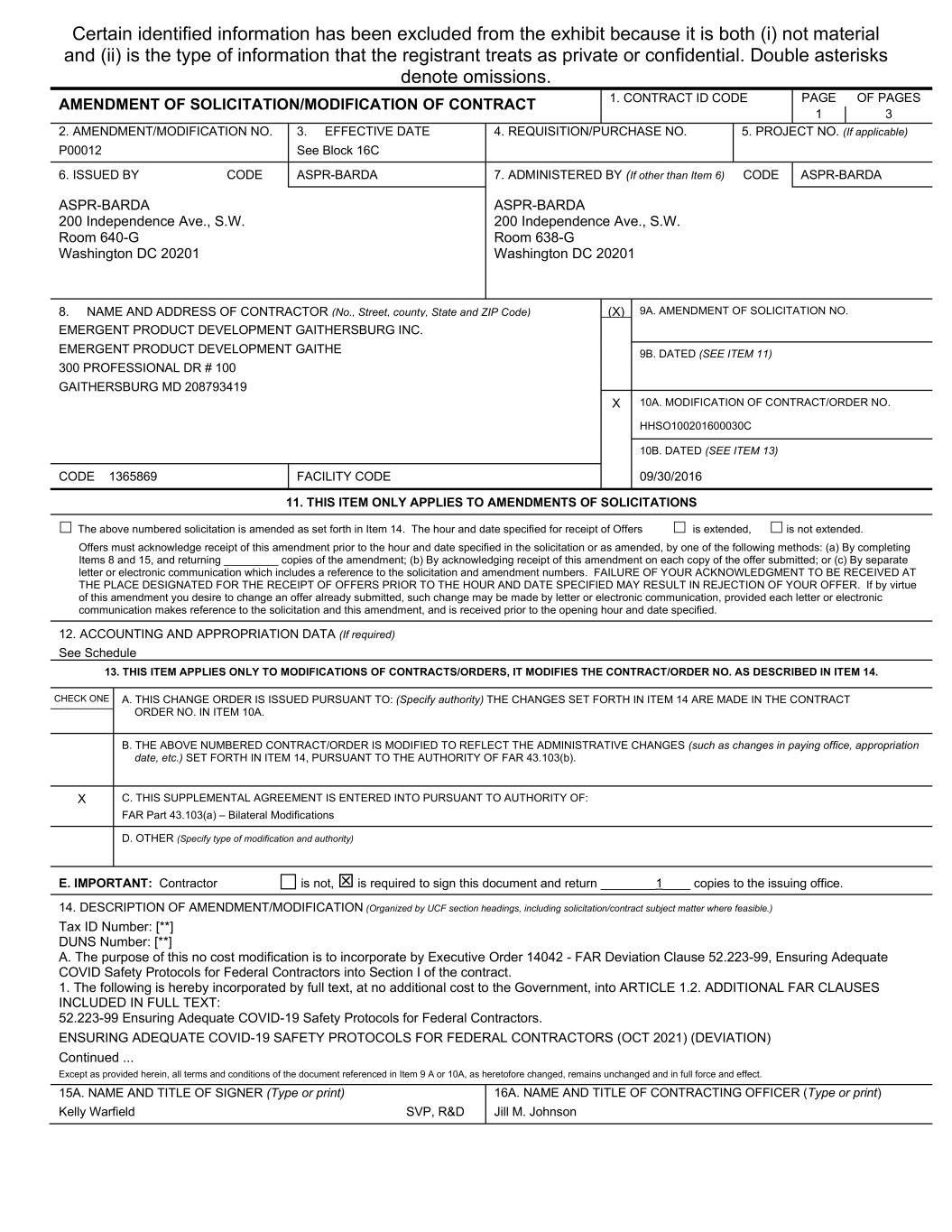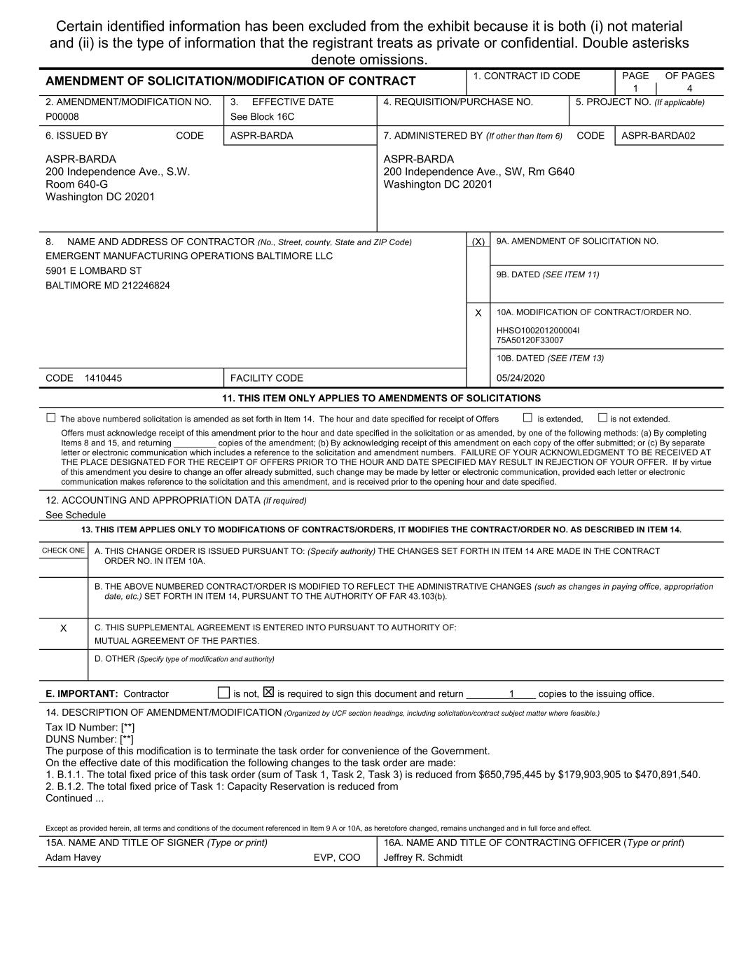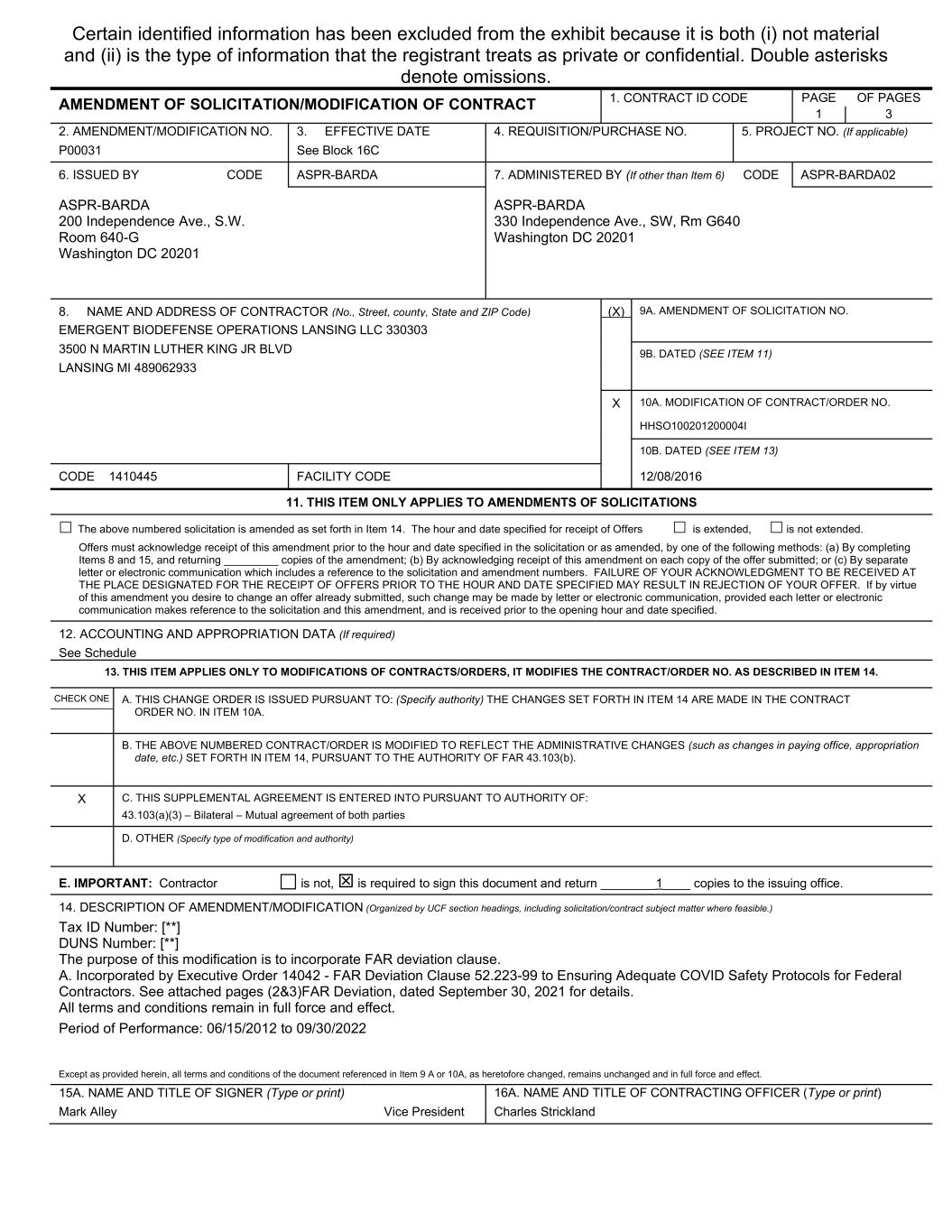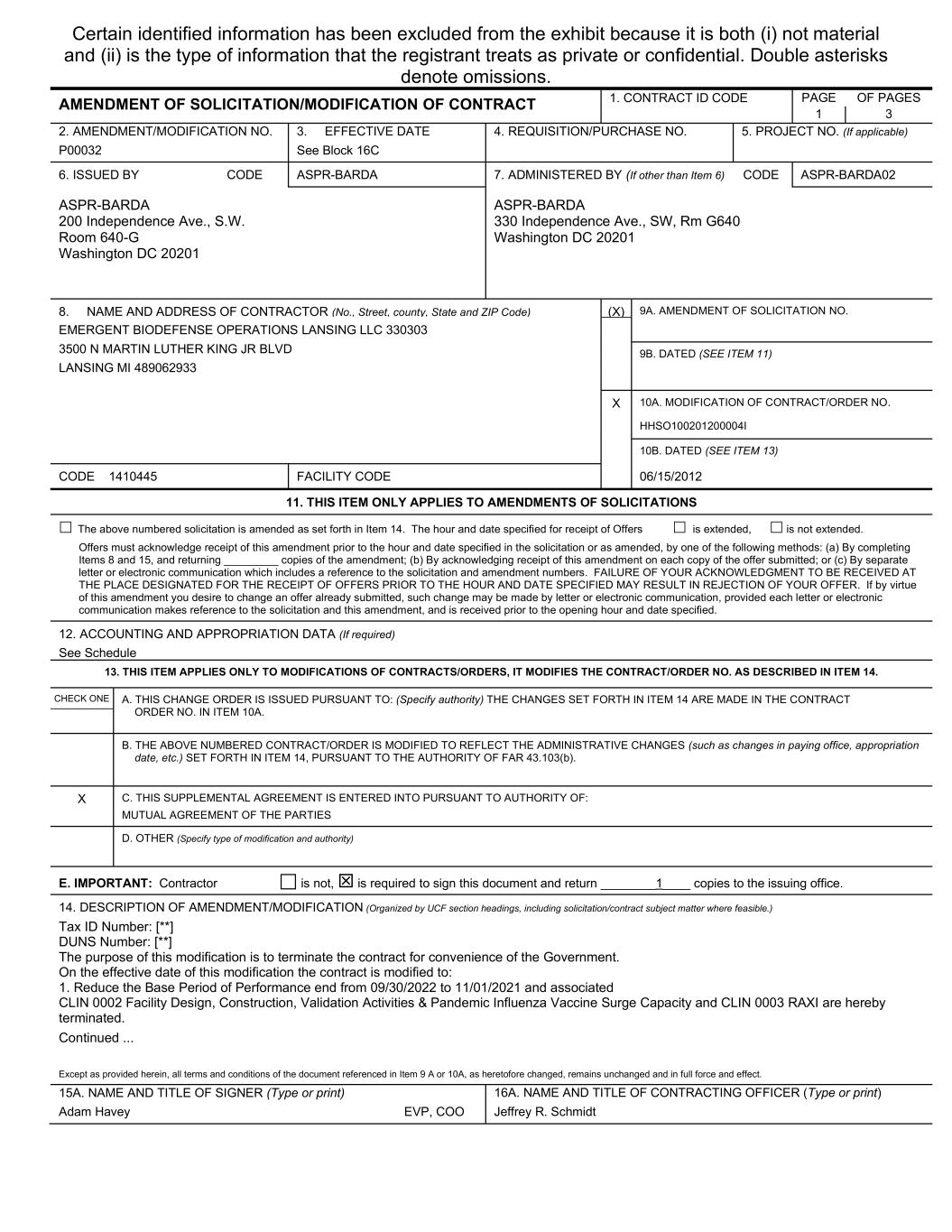 •the negotiation of further commitments or contracts related to the collaboration and deployment of capacity toward future commercial manufacturing under our CDMO contracts;