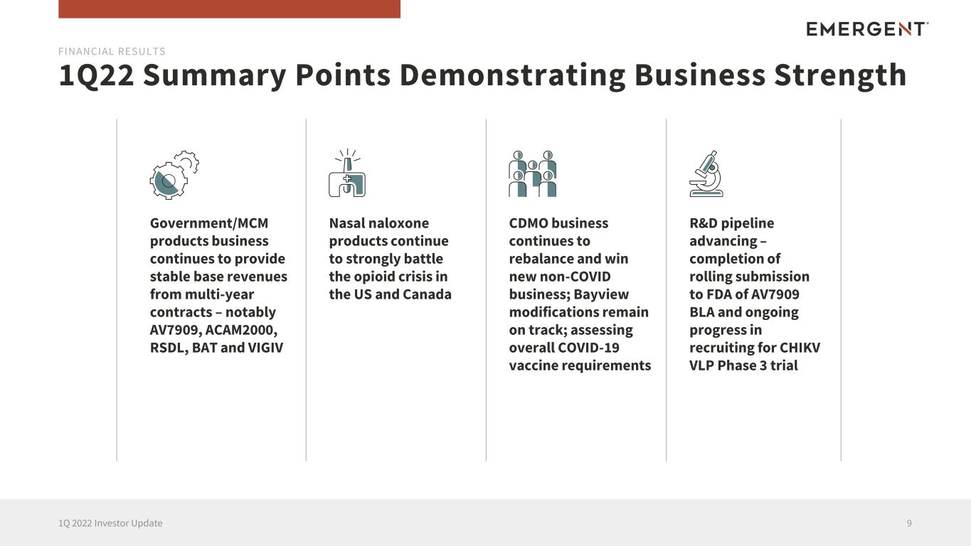 DocumentEMERGENT BIOSOLUTIONS REPORTS FINANCIAL RESULTS FOR FIRST QUARTER 2022