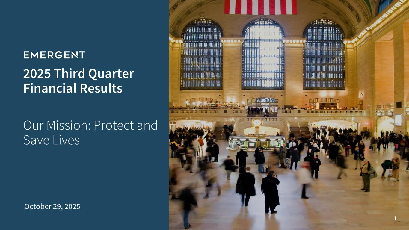 GAITHERSBURG, Md., October 29, 2025—Emergent BioSolutions Inc. (NYSE: EBS) today reported financial results for the third quarter ended September 30, 2025.