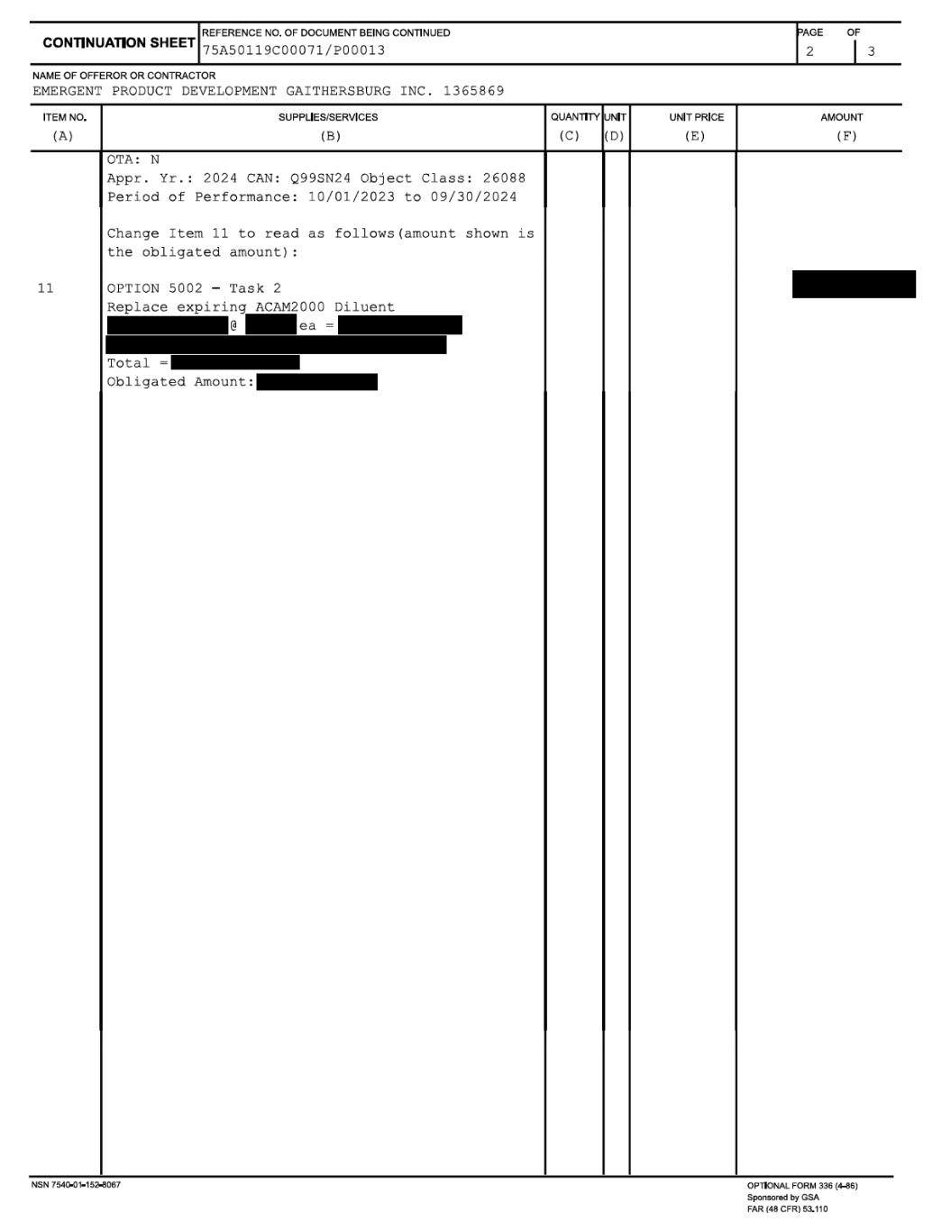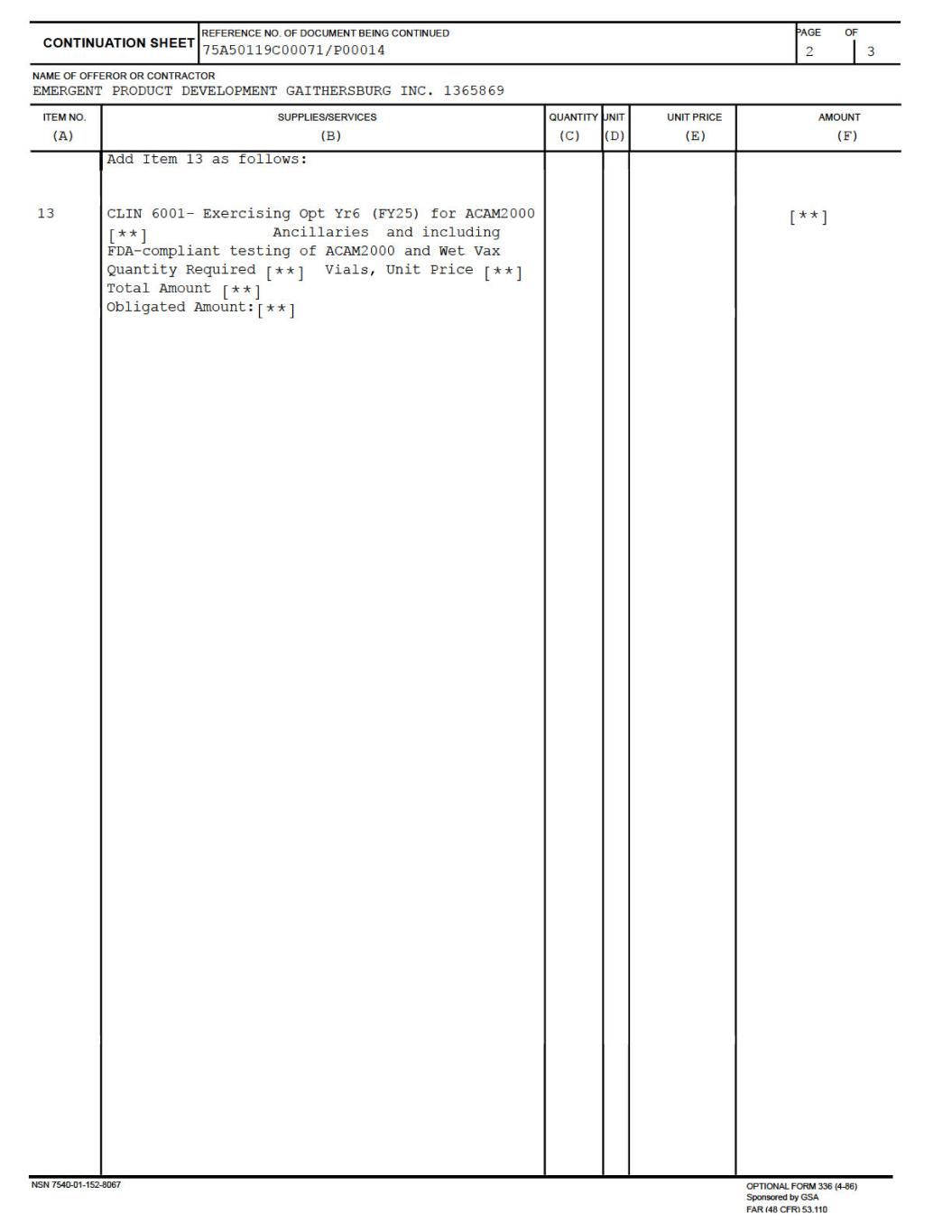 •the procurement of our product candidates by USG entities under regulatory authorities that permit government procurement of certain medical products prior to United States Food and Drug Administration (“FDA”) marketing authorization, and corresponding procurement by government entities outside the United States;