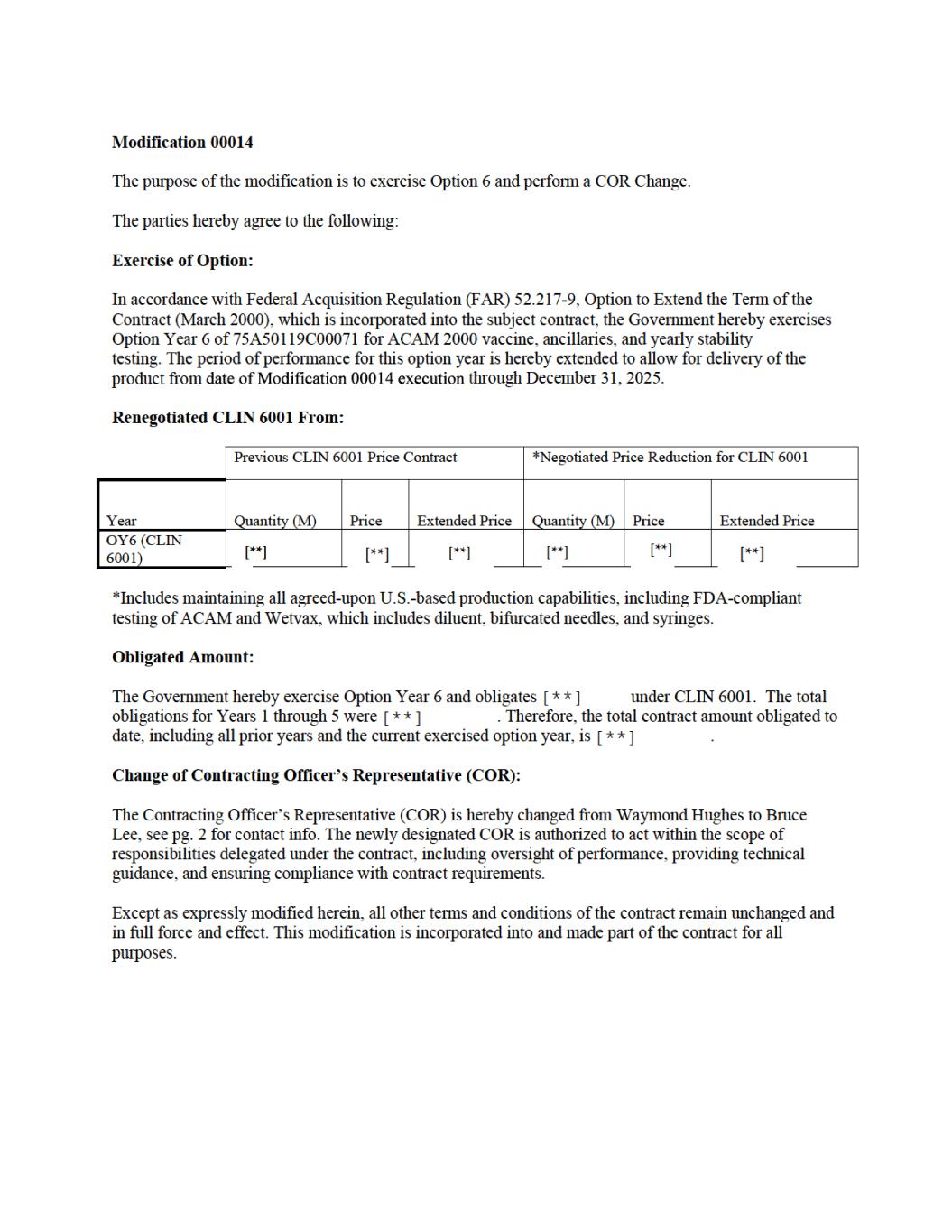 •the availability of U.S. government (“USG”) funding for contracts related to procurement of our medical countermeasures (“MCM”) products, including CYFENDUS® (Anthrax Vaccine Adsorbed (AVA), Adjuvanted), previously known as AV7909, ACAM2000® (Smallpox (Vaccinia) Vaccine, Live), CNJ-016® (Vaccinia Immune Globulin Intravenous, Human (VIGIV)), BAT® (Botulism Antitoxin Heptavalent (A,B,C,D,E,F,G)-(Equine)), BioThrax® (Anthrax Vaccine Adsorbed), EbangaTM (ansuvimab-zykl) and/or TEMBEXA® among others, as well as contracts related to development of medical countermeasures;