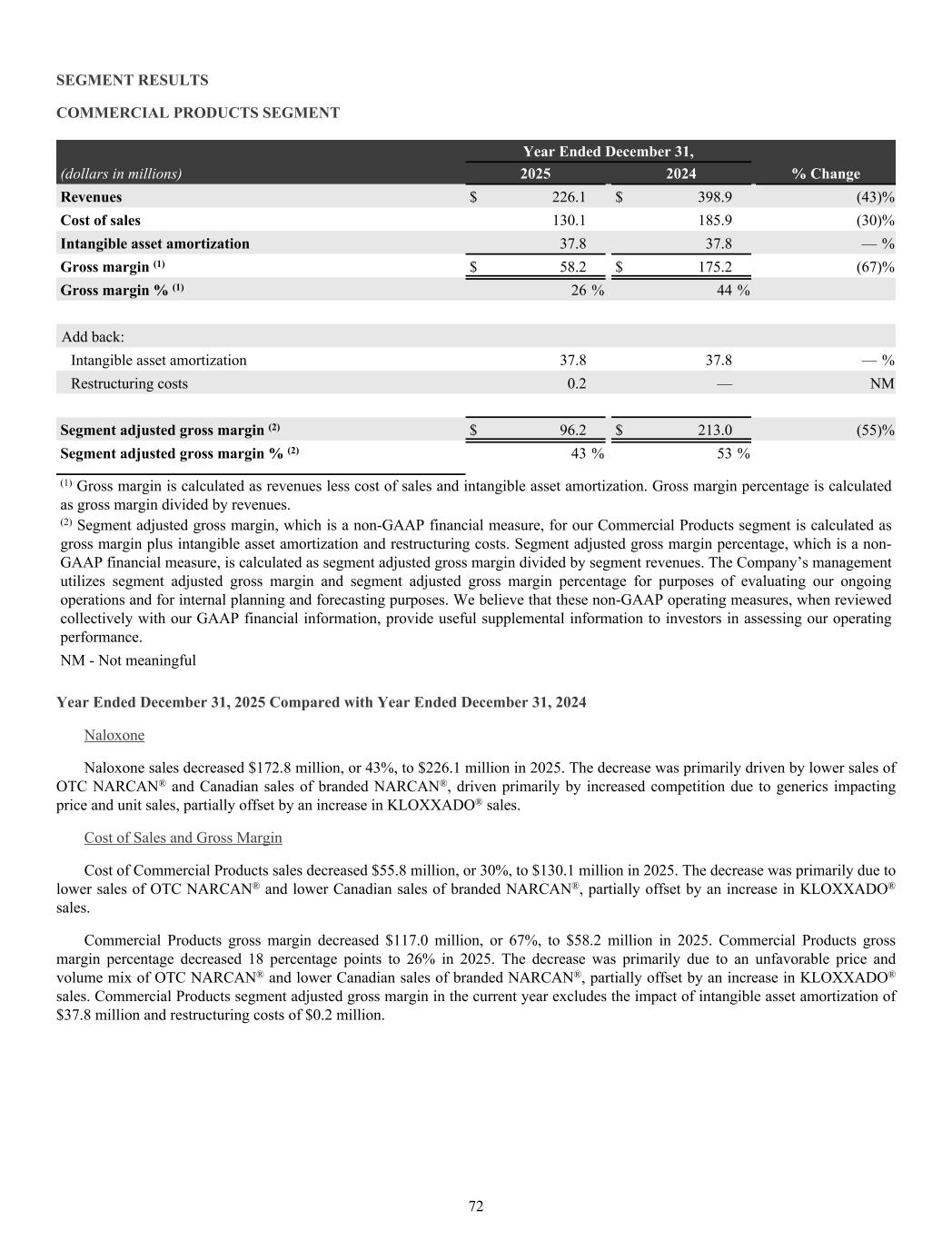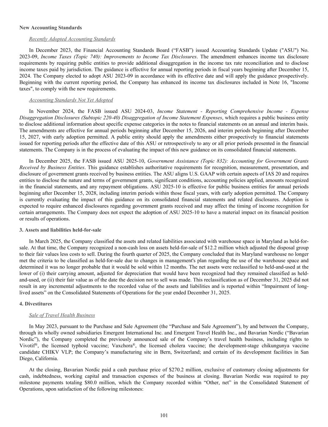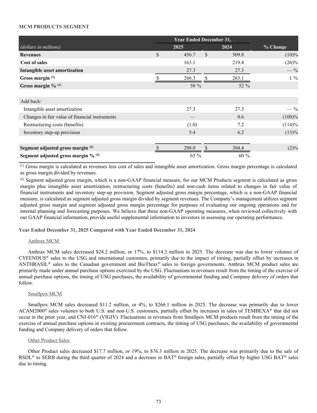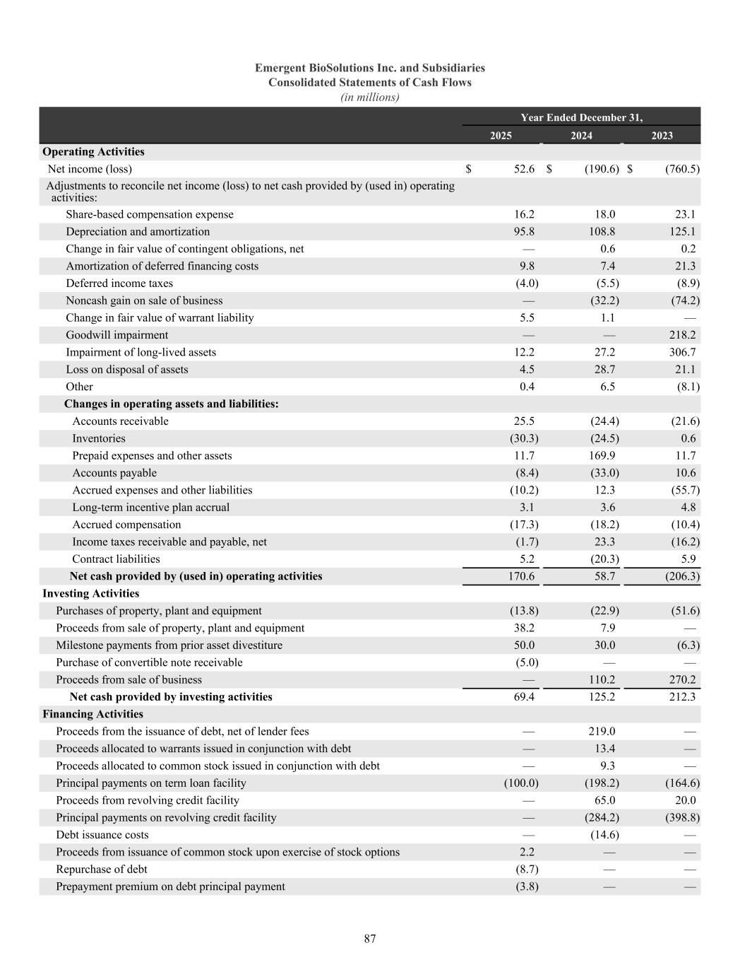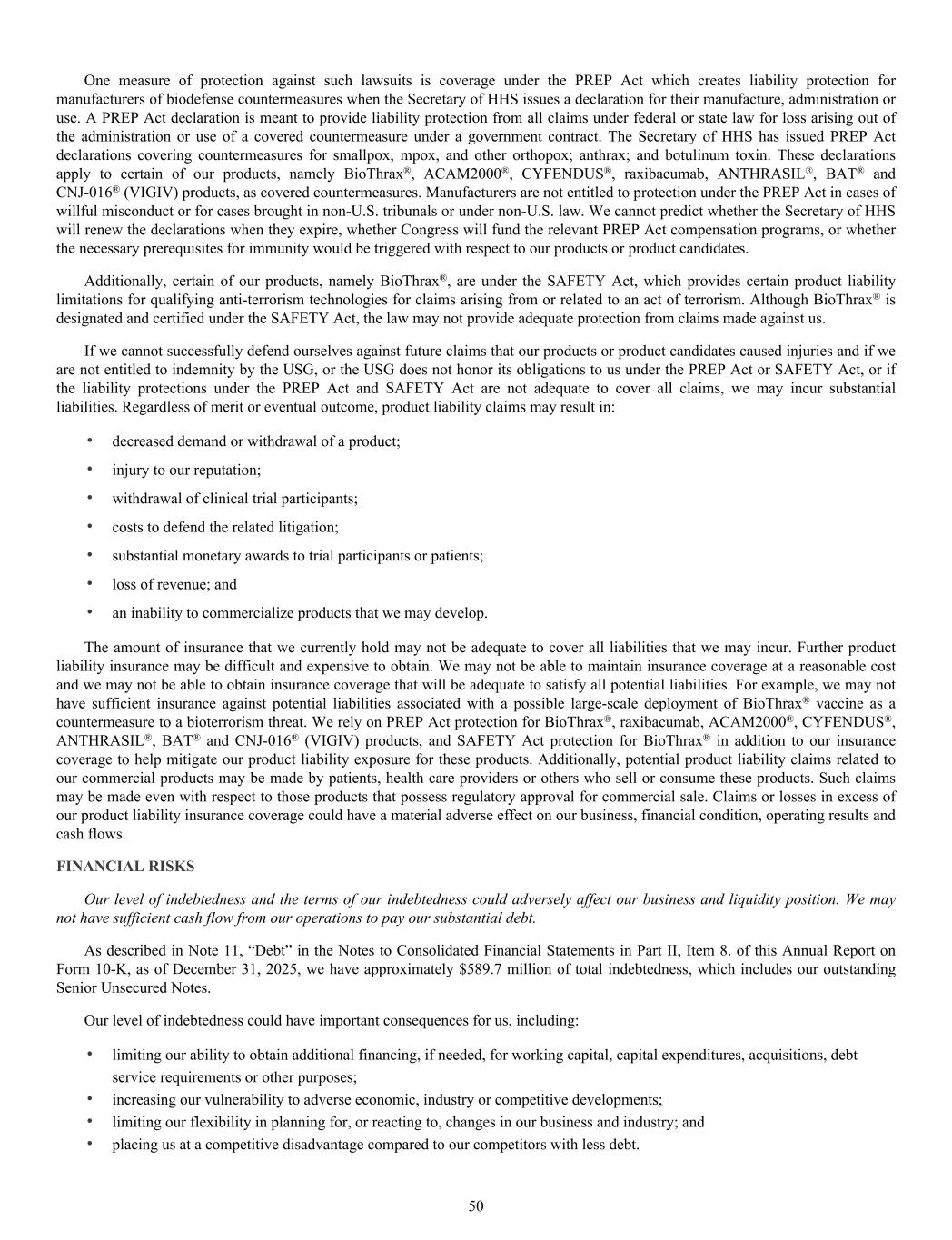 Dear Fellow Shareholders, In 2025, we made meaningful progress toward our multi-year strategy to turnaround and transform Emergent. As we continue our transformation journey, we remain committed to our mission to protect and save lives, while prioritizing patient safety, quality and compliance and advancing the operational and strategic priorities essential to long-term growth. This year we took important steps to strengthen our financial position through a customer- focused, lean and efficient business model, strong operating results, margin improvements and significant debt repayment. These actions, combined with the strategic divestitures and operational initiatives executed in 2024, enhanced our balance sheet and reinforced the foundation needed to support sustainable value creation. We successfully achieved several important milestones, including: Looking ahead, we are focused on the transformation of our company by investing in revenue growth drivers across both the MCM and naloxone businesses by advancing our internal pipeline, expanding our international revenue and pursuing targeted acquisitions and external opportunities that leverage our infrastructure and scale. Our products help protect communities and address critical public health challenges like smallpox, anthrax, botulism, Ebola and opioid overdoses. I want to express my deepest gratitude to my incredible colleagues at Emergent for another strong year of achievements and advancements. We believe Emergent is well positioned to deliver a strong 2026 and beyond. We are confident in our ability to transform the company and fulfill our mission to protect and save lives. Joe Papa President and CEO Delivered strong earnings and cash flow, improved our cash balance by $100M and reduced our debt by $110M. Secured multiple U.S. government contract awards for biodefense preparedness and delivered medical countermeasures to over 20 countries. Distributed over 100 million doses of NARCAN® Nasal Spray across the U.S. and Canada since 2016. Expanded naloxone portfolio by acquiring exclusive commercial rights to KLOXXADO® (naloxone HCI) Nasal Spray 8 mg and maintained market leadership position for NARCAN® Nasal Spray 4 mg. Divested Baltimore-Bayview facility for $36.5M while retaining rights to secure manufacturing capacity for future growth. Received U.S. FDA approval for drug product manufacturing of raxibacumab at Winnipeg facility. Announced investment agreement with Swiss Rockets AG and pursued strategic collaboration with its subsidiary Rocketvax. Advanced key initiatives to enhance quality and operational excellence across the enterprise.