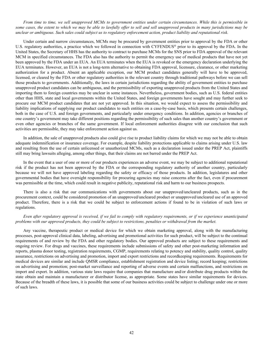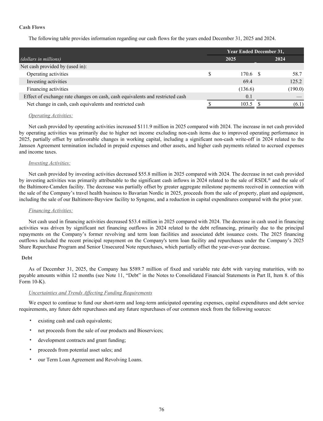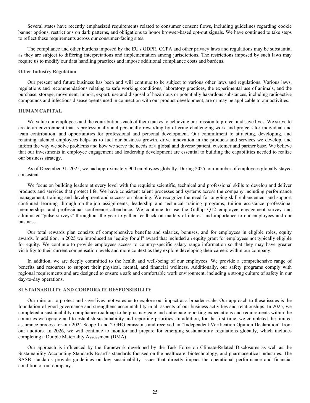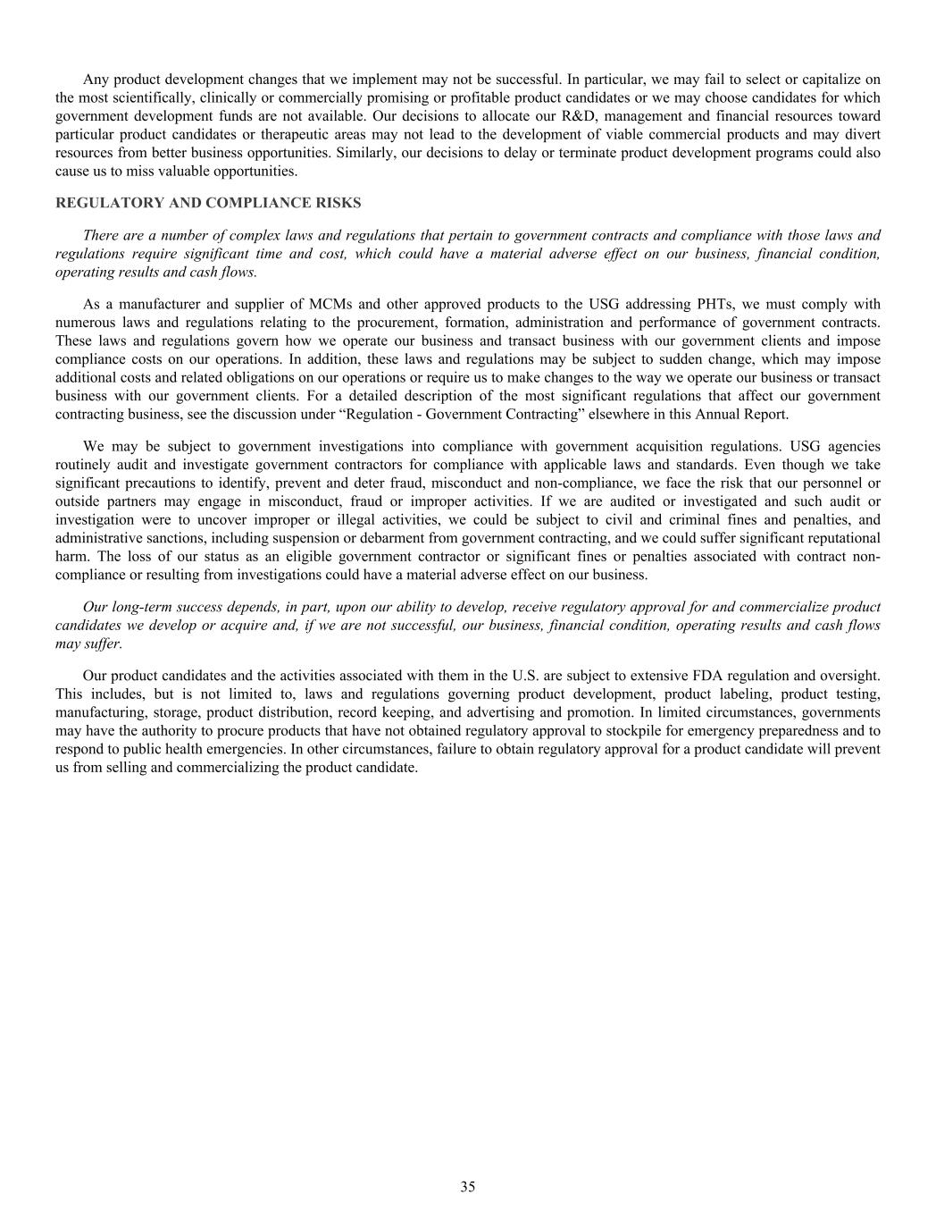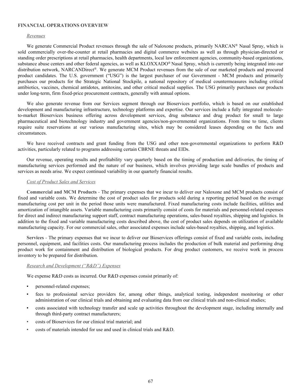 Dear Fellow Shareholders, In 2025, we made meaningful progress toward our multi-year strategy to turnaround and transform Emergent. As we continue our transformation journey, we remain committed to our mission to protect and save lives, while prioritizing patient safety, quality and compliance and advancing the operational and strategic priorities essential to long-term growth. This year we took important steps to strengthen our financial position through a customer- focused, lean and efficient business model, strong operating results, margin improvements and significant debt repayment. These actions, combined with the strategic divestitures and operational initiatives executed in 2024, enhanced our balance sheet and reinforced the foundation needed to support sustainable value creation. We successfully achieved several important milestones, including: Looking ahead, we are focused on the transformation of our company by investing in revenue growth drivers across both the MCM and naloxone businesses by advancing our internal pipeline, expanding our international revenue and pursuing targeted acquisitions and external opportunities that leverage our infrastructure and scale. Our products help protect communities and address critical public health challenges like smallpox, anthrax, botulism, Ebola and opioid overdoses. I want to express my deepest gratitude to my incredible colleagues at Emergent for another strong year of achievements and advancements. We believe Emergent is well positioned to deliver a strong 2026 and beyond. We are confident in our ability to transform the company and fulfill our mission to protect and save lives. Joe Papa President and CEO Delivered strong earnings and cash flow, improved our cash balance by $100M and reduced our debt by $110M. Secured multiple U.S. government contract awards for biodefense preparedness and delivered medical countermeasures to over 20 countries. Distributed over 100 million doses of NARCAN® Nasal Spray across the U.S. and Canada since 2016. Expanded naloxone portfolio by acquiring exclusive commercial rights to KLOXXADO® (naloxone HCI) Nasal Spray 8 mg and maintained market leadership position for NARCAN® Nasal Spray 4 mg. Divested Baltimore-Bayview facility for $36.5M while retaining rights to secure manufacturing capacity for future growth. Received U.S. FDA approval for drug product manufacturing of raxibacumab at Winnipeg facility. Announced investment agreement with Swiss Rockets AG and pursued strategic collaboration with its subsidiary Rocketvax. Advanced key initiatives to enhance quality and operational excellence across the enterprise.